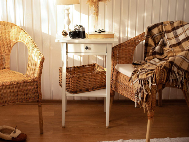 Sử dụng các màu sắc gần với thiên nhiên như màu đất, màu trời, màu cây cối sẽ giúp phòng ngủ mang lại cảm giác an toàn, thoải mái. Các loại vải như lanh, cotton là những lựa chọn tốt cho giường ngủ, hoặc đồ nội thất bằng mây, gỗ hoặc đồ đan lát cũng sẽ được ưa chuộng.