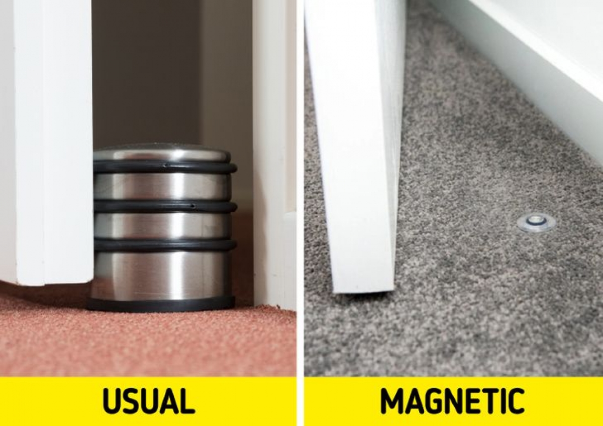 Tấm chắn cửa là một vật dụng rất hữu ích để bảo vệ tường, đồ nội thất và cửa khỏi bị va đập. Tuy nhiên, những tấm chắn cửa lớn nhô ra khỏi sàn trông không đẹp mắt và mọi người có thể dễ dàng vấp phải chúng. Bạn có thể cân nhắc sử dụng chặn cửa từ, có thiết kế phẳng với nam châm ẩn bên trong.